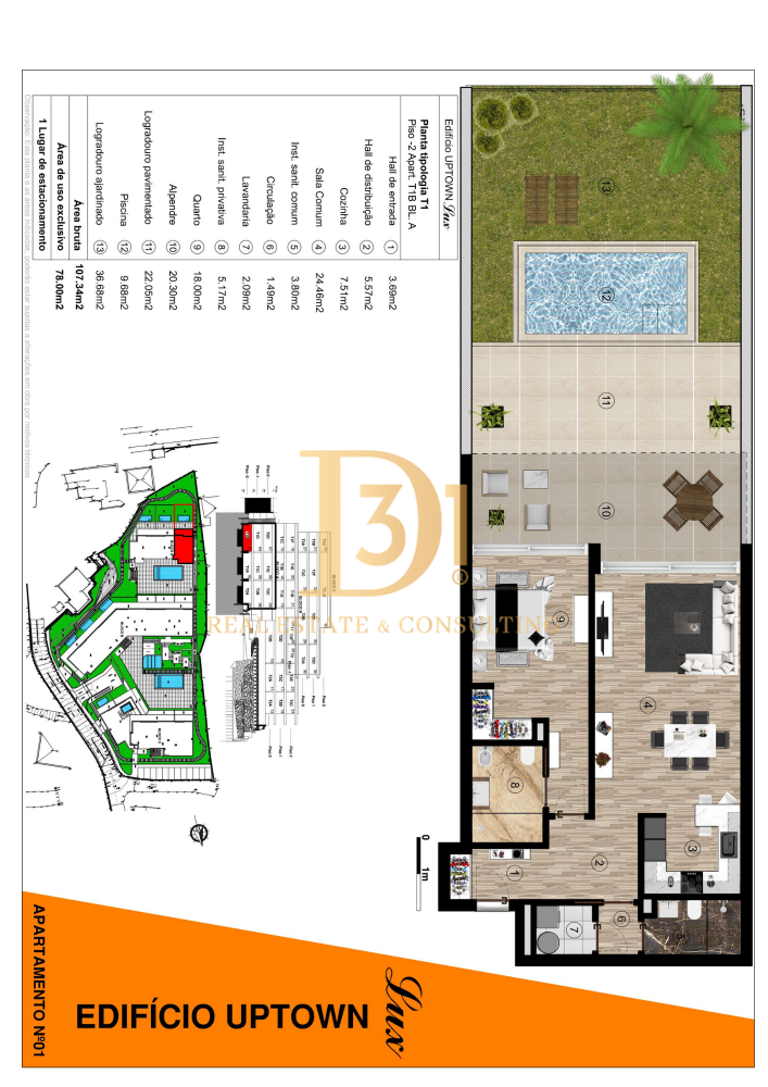 UPTOWN LUX: Uma Redefinição da Vida de Luxo Imagine-se a viver num lugar onde o luxo não é apenas um conceito, mas uma realidade diária. No UPTOWN LUX, cada detalhe foi cuidadosamente pensado para criar uma experiência de vida verdadeiramente excecional. Esqueça o comum e abrace o extraordinário. Um Convite à Exclusividade Com apenas 36 residências exclusivas, o UPTOWN LUX oferece uma privacidade e serenidade inigualáveis. Dos apartamentos T1, T2 e T3 a um ginásio topo de gama e várias piscinas – algumas delas privadas – este é um santuário de bem-estar. Relaxe no nosso sereno jardim interior, um oásis de tranquilidade que o convida a desconectar-se do mundo. Onde o Design se Encontra com o Conforto As suas novas janelas, que se estendem do chão ao teto, não são apenas aberturas, são molduras vivas para vistas deslumbrantes que se fundem harmoniosamente com os seus espaços interiores. Cada canto do UPTOWN LUX é uma celebração de design requintado e sofisticação contemporânea, onde a qualidade dos acabamentos, como o pavimento em carvalho europeu e as cozinhas com eletrodomésticos Bosch, elevam o padrão de vida. Tecnologia para um Estilo de Vida Mais Inteligente Com um sistema de casa inteligente que permite o controlo total do seu lar – desde a segurança com detetores de incêndio e inundações, até à pré-instalação para o controlo de luzes, ar condicionado e estores – o UPTOWN LUX adapta-se ao seu estilo de vida. A sustentabilidade também é uma prioridade, com um sistema de bomba de calor de eficiência energética classe A que garante poupanças significativas. O Seu Novo Começo Espera por Si Com a conclusão prevista para Dezembro de 2025, o sonho de uma vida sumptuosa está prestes a tornar-se realidade. Deixe-se envolver por este ambiente exclusivo, onde o luxo não tem limites. Certificação Energética: A Não hesite e agende já a sua visita! Se você é um consultor imobiliário, não hesite em entrar em contacto connosco para uma parceria de 50%-50%. Sousa 967 924 403. D31 AMI 23602.